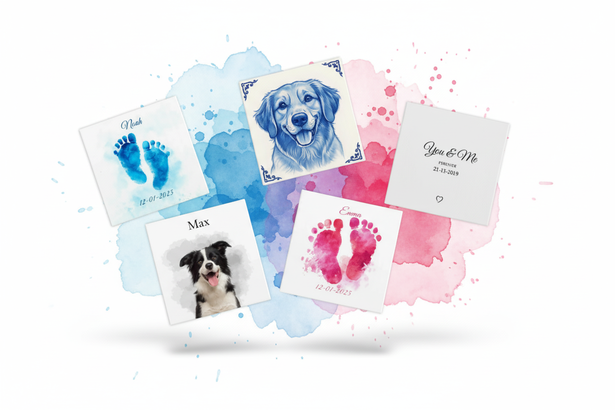 Aquarel Portret op Tegel – Gepersonaliseerd Cadeau
