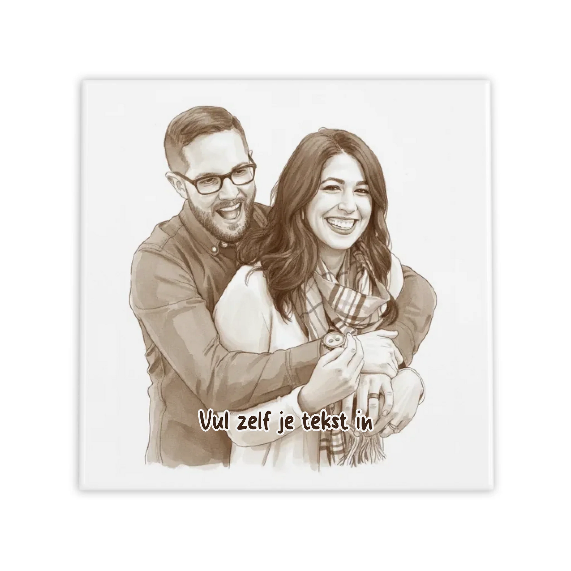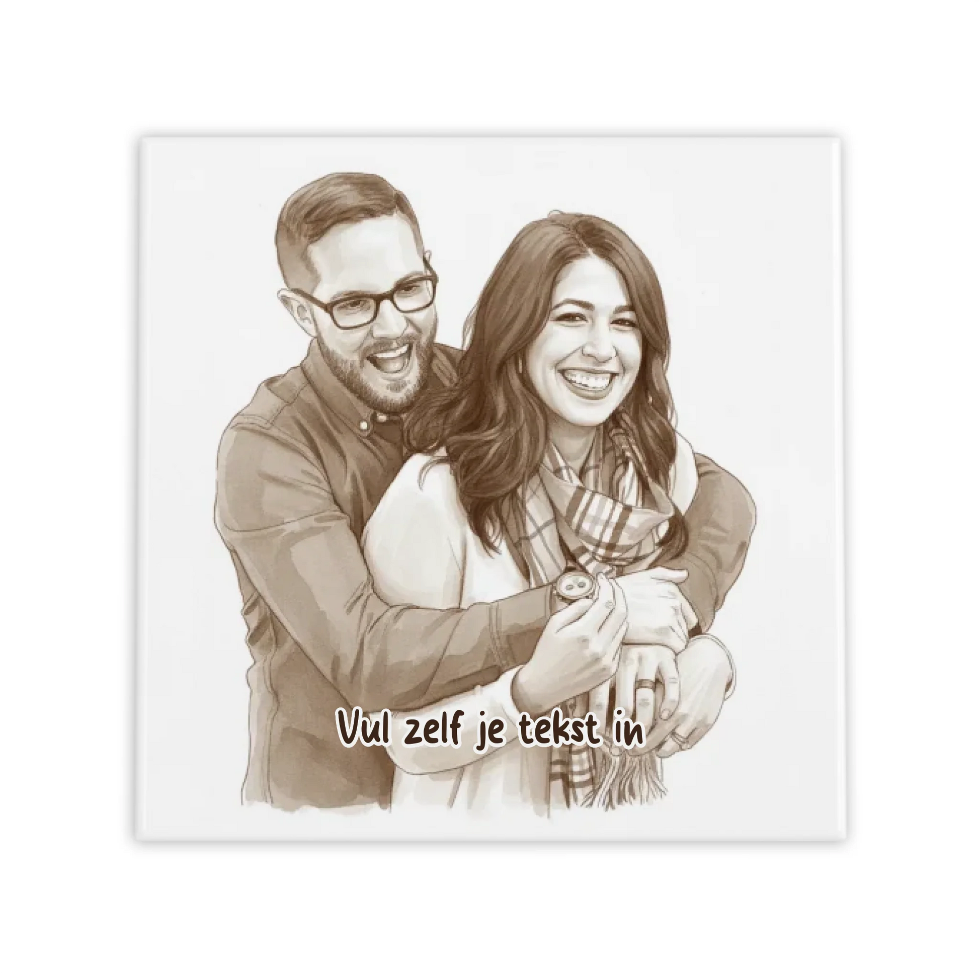 Transformeer je favoriete foto naar een tijdloos kunstwerk met ons Sepia Vintage Portret Tegeltje. Jouw dierbare herinnering wordt omgetoverd tot een warme, nostalgische illustratie in klassieke sepia tinten - precies zoals de romantische tekeningen uit vervlogen tijden.