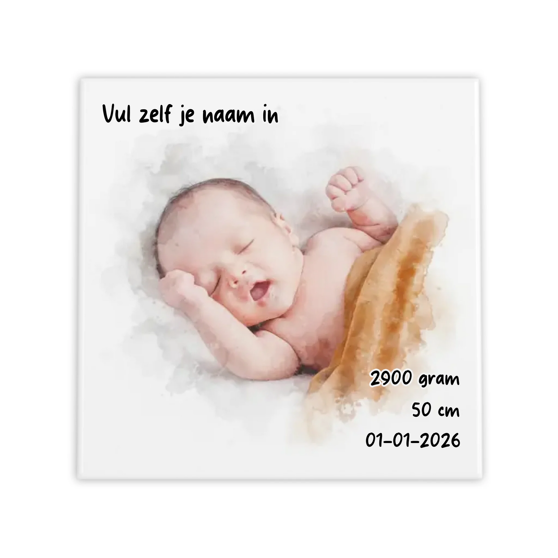 Waterverf Geboortetegel met Naam, Gewicht en Lengte